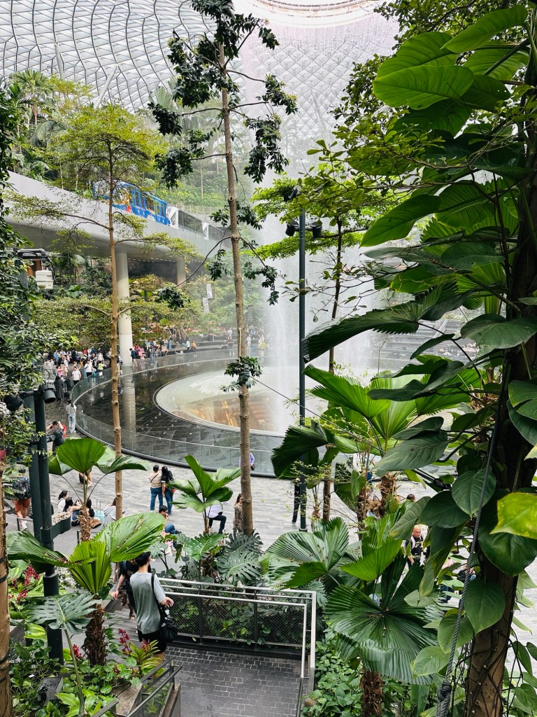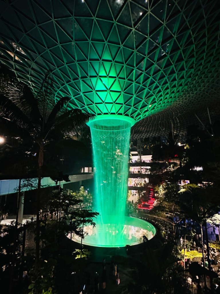 Äntligen framme efter förseningar både i Linkan & Amsterdam, första natten på flygplatsens hotell, med fantastiskt vackert vattenfall